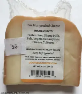 Food and Drug Administration (FDA) has issued a Class 1 recall for 64 pounds of ‘Der Mutterschaf’ cheese, marking one of the most urgent food safety alerts in recent months.
