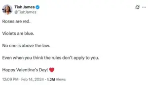 Happy Valentine’s Day!’ The post, which many interpreted as a veiled jab at Trump’s legal woes, was shared widely at the time.