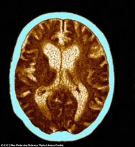 Her brain scan reveals the devastating toll of Alzheimer’s: atrophy in critical regions and dilated ventricles.