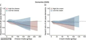 Specifically, individuals who consumed approximately 1.8 ounces of full-fat cheese daily showed a 13% reduction in dementia risk compared to those who consumed the least.