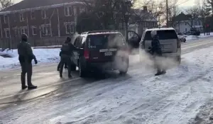 Moments later, Ross fires three shots, his weapon drawn as the SUV begins to move toward him.