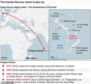 Trump accused the UK of committing a ‘great stupidity’ by agreeing to cede the Chagos Islands to Mauritius, a move he claimed had ‘heightened the U.S. need to acquire Greenland.’ In a post on Truth Social, the president framed the UK’s decision as a direct threat to American interests, even though his administration had previously endorsed the Chagos agreement as a ‘monumental achievement.’ His remarks caught the UK government off guard, prompting swift legislative action last night to formalize the handover of the islands and lease back Diego Garcia, a strategically vital U.S. military base.