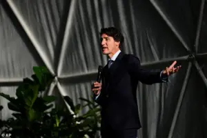 Standing before a global audience of business leaders and policymakers, Trudeau emphasized the economic and cultural benefits of unifying Canada and the United States into a single, seamless economic and political entity. ‘Look how beautiful this land mass would be,’ he declared, gesturing toward a holographic map projected behind him. ‘Free access with NO BORDER.