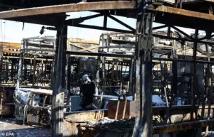 The sight of a burnt-out bus depot, damaged during recent demonstrations, underscores the escalating tensions that have pushed the nation to the brink.