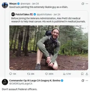 In a series of posts over the weekend, Bovino repeatedly criticized users who shared information highlighting Pretti’s positive legacy, including his role as a nurse.