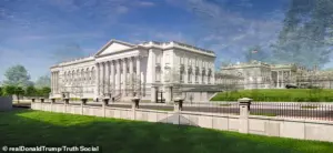 Donald Trump has unveiled a new rendering of his $300 million ‘Big, Beautiful Ballroom’ as part of a planned overhaul of the White House’s East Wing, a project he described as ‘magnificent’ and ‘necessary’ for the nation’s future. The president shared a visual from the perspective of the Treasury Building across Pennsylvania Avenue on his Truth Social platform, emphasizing that the current East Wing is ‘very small, dilapidated and rebuilt many times’ and in need of replacement. The proposed design, led by architect Shalom Baranes, includes a grand ballroom that Trump claims has been ‘asked for by Presidents for over 150 years.’ The ballroom, which would be part of a new two-story East Colonnade, is expected to host up to 1,000 seated guests for dinner in a 22,000-square-foot space. Trump argued that the new structure would serve the country ‘for centuries into the future,’ though critics have raised concerns about its scale, cost, and the historical integrity of the White House.